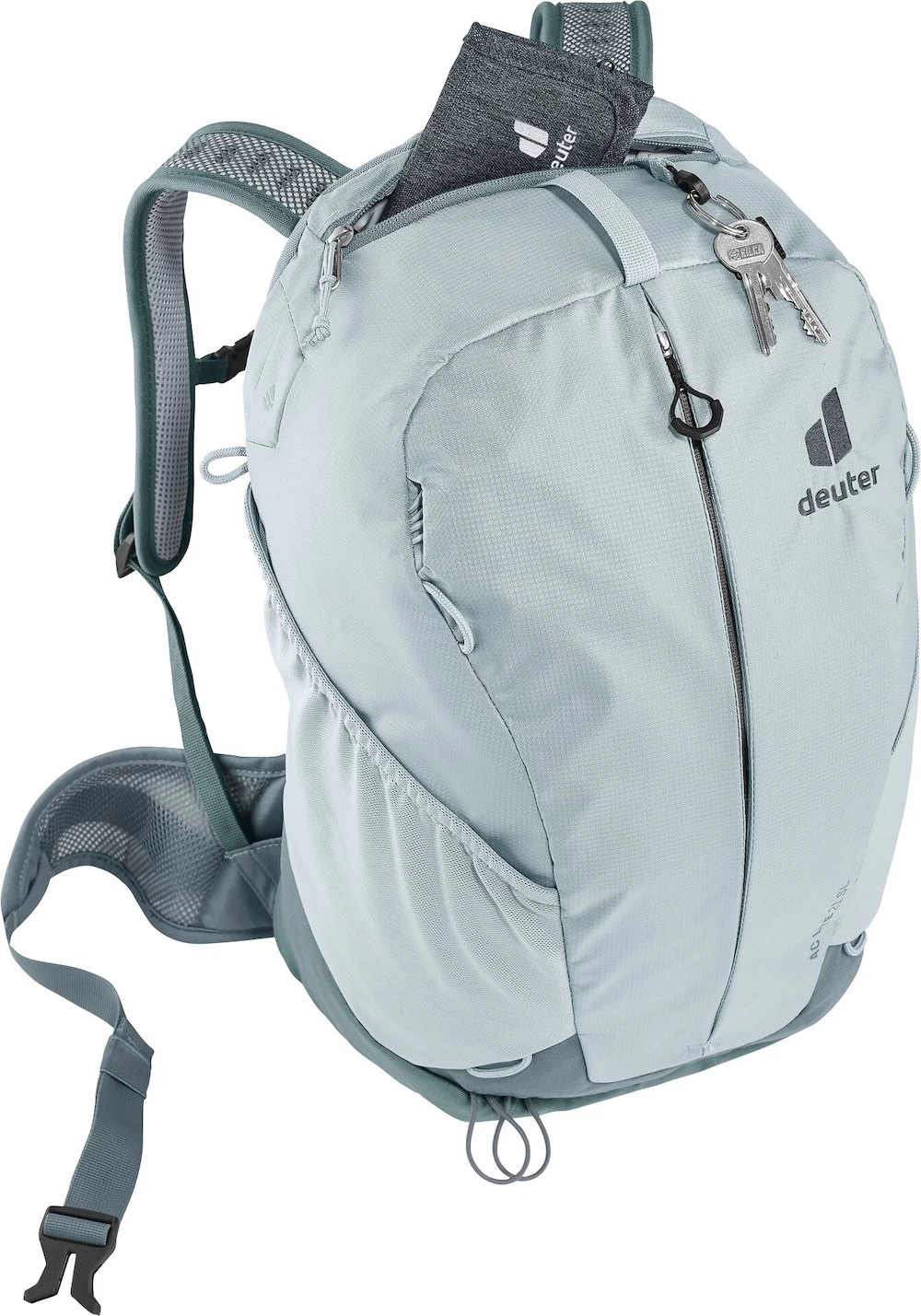 TOP ORGANISIERT mit der elastischen und luftigen Reißverschluss-Seitentasche – in der Smartphone und Snacks Platz finden.