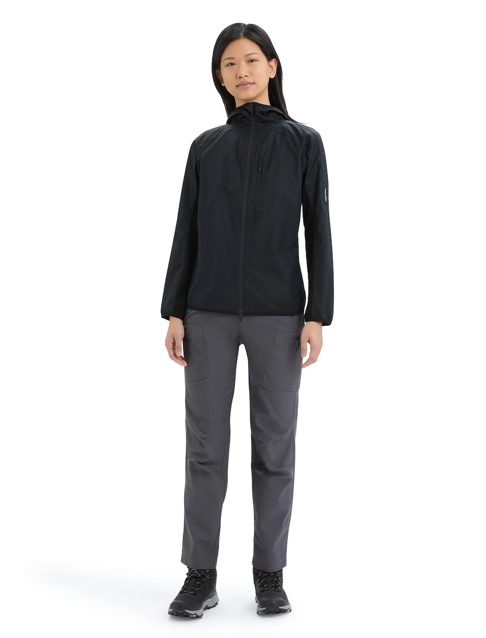 - Elastische Einfassung an Bündchen und Hüftabschluss für eine sichere Passform