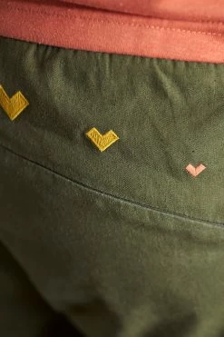 Kletter-Hanf-Stretch-Hose die zu unseren Bestsellern gehört. Schlichte Fronttaschen, eine Schlaufe für eine Boulder-Bürste und eine nahtfeine Reißverschlusstasche hinten sowie viele bunte Stickereien ergänzen diesen Style.