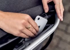- Stabile Abstellfüße, formstabiler Taschenkörper